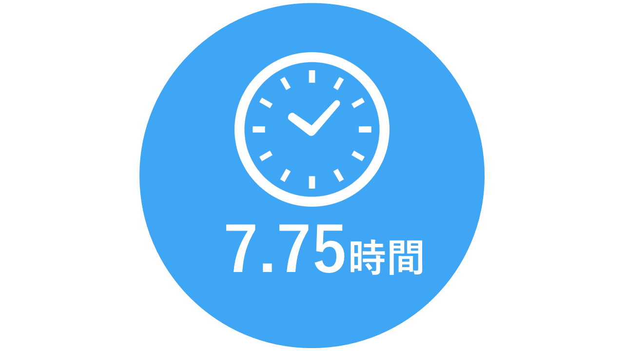 就業時間は8:00~17:15(休憩90分含む)で実働7.75時間です。