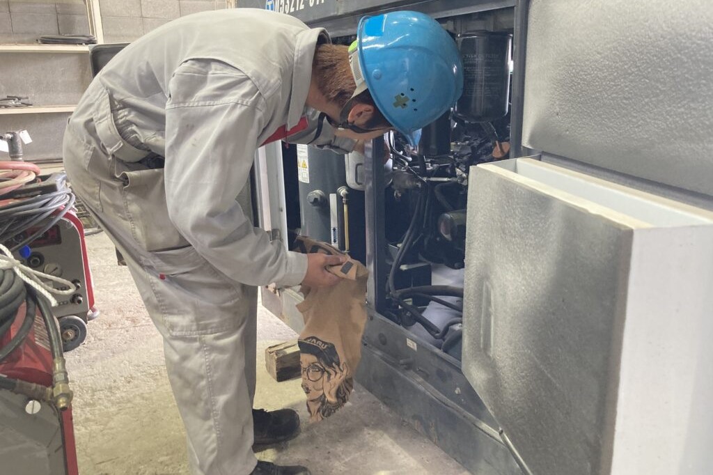 入社後、研修期間を経て整備部門に配属。建設機械のレンタル・リースをする際の入出庫時の点検や対応を担当。