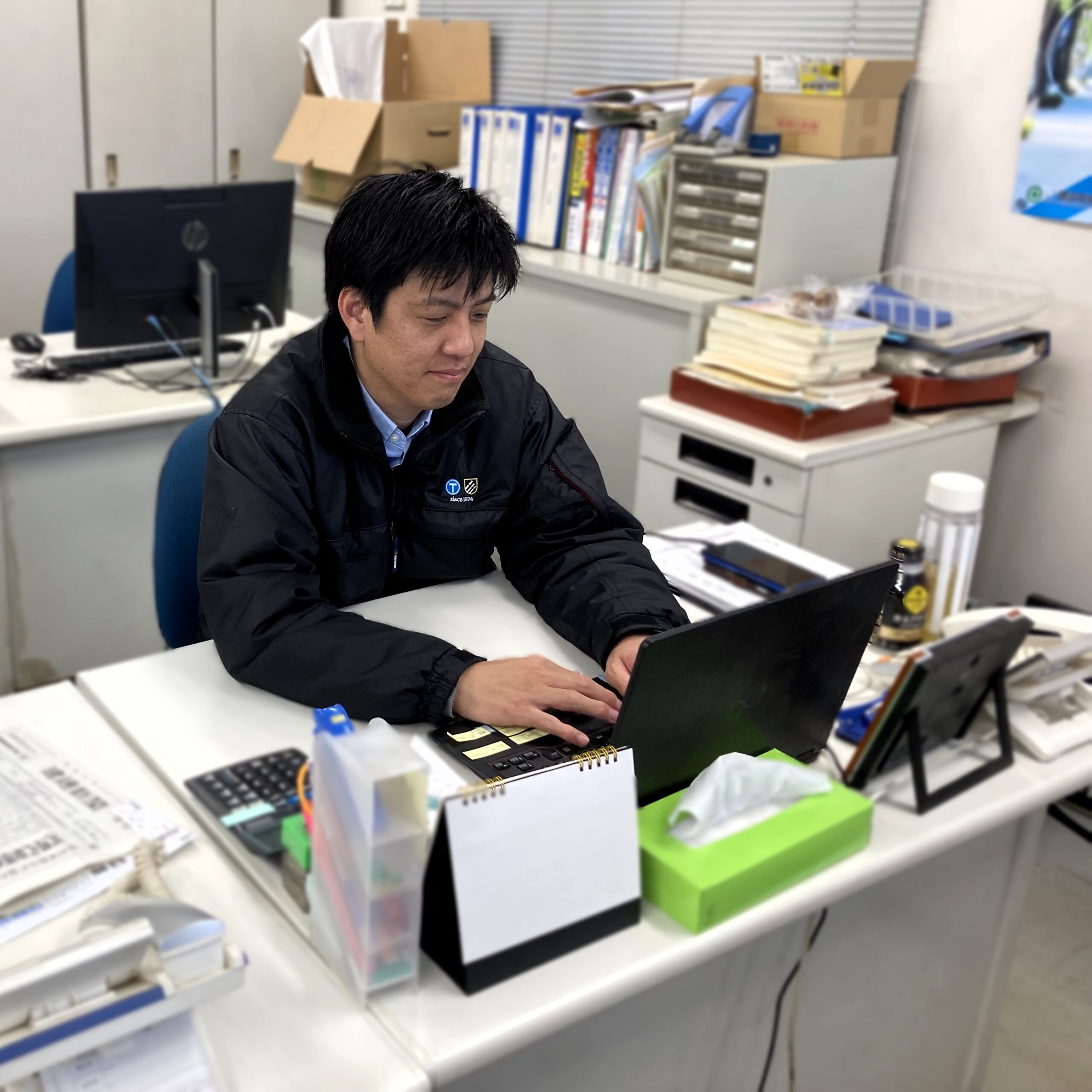気持ちよく仕事ができるように身の回りの掃除を行います。